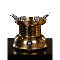Elegant decorative piece constructed entirely from premium brass material. Equipped with reliable German EGO heating plate technology. Features precise German EGO thermostat for accurate temperature control. Double layered upper construction includes efficient thermal insulation system. Versatile design allows operation with or without using sand. Includes four stainless steel pots for immediate coffee brewing. Powerful 1500 watt heating element ensures rapid sand heating. Heavy duty electrical components designed for rigorous commercial use. Compact 18cm tile diameter fits perfectly on service counters.