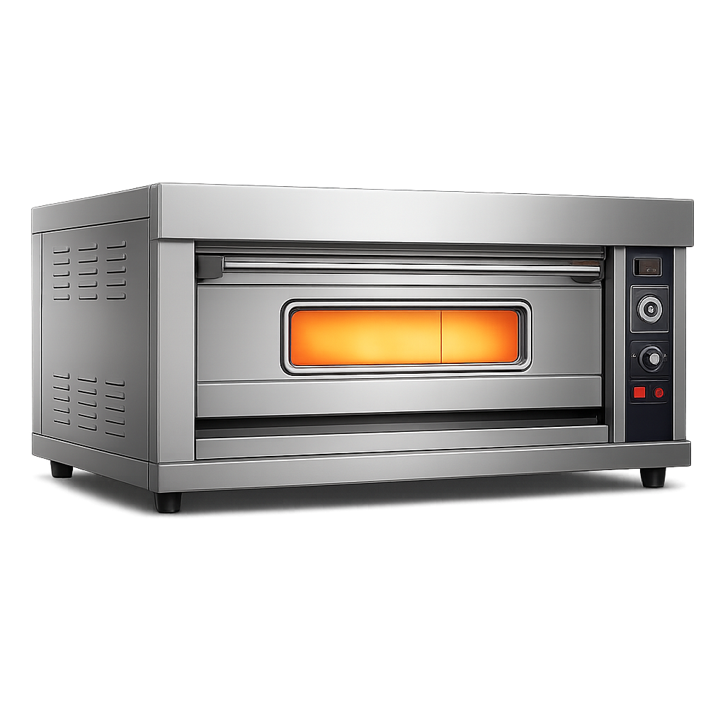 - Spacious single deck design accommodates three large trays for continuous baking.