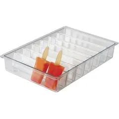 مصنوع من بولي كربونات قوي مقاوم للكسر والتلف. يوفر تنظيم مثالي لعصا الآيس كريم داخل العرض. تصميم شفاف يتيح رؤية المنتجات بشكل جذاب. سعة كبيرة تستوعب العديد من عصا الايس كريم. سهل التنظيف وآمن للاستخدام التجاري اليومي.