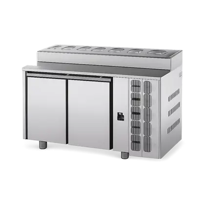 - ثلاجة كاونتر مجهزة بوحدة علوية لتحضير السلطات والمكونات بسرعة.