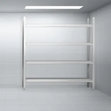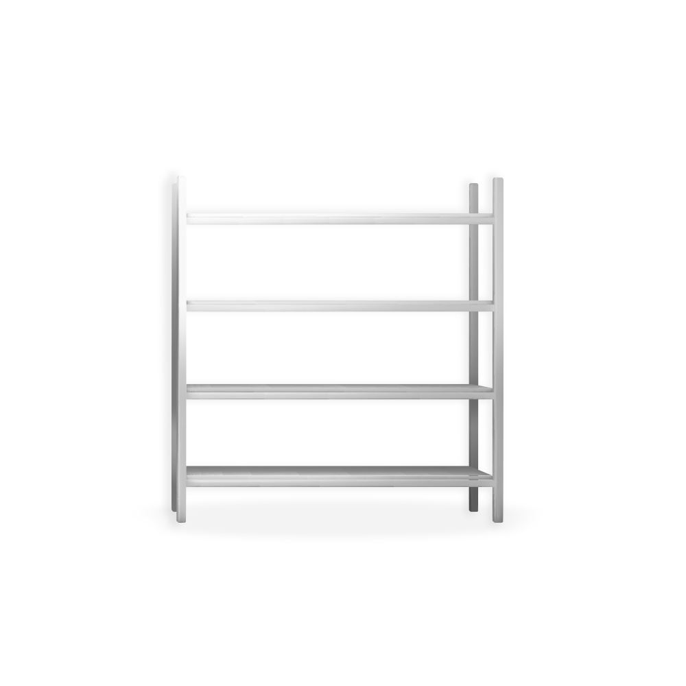 - طقم رفوف معياري متكامل يضم أربعة مستويات لتنظيم التخزين بكفاءة.