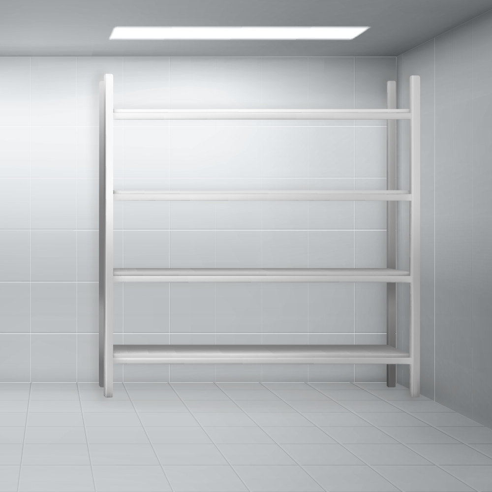 - أرفف مزودة بألواح بولي إيثيلين عالية الكثافة قابلة للإزالة لسهولة التنظيف.